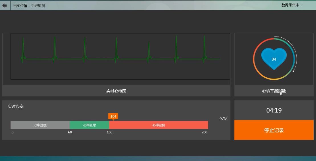 智能身心反饋訓(xùn)練系統(tǒng)基于生物反饋原理、音樂療法原理,實(shí)時(shí)評(píng)估情緒狀態(tài),通過主動(dòng)學(xué)習(xí)、強(qiáng)化訓(xùn)練的方式。讓使用者學(xué)會(huì)自我情緒控制,維護(hù)日常身心健康。
